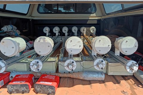 Die Arbeit im Feld war nach mehreren Wochen Trockenheit staubig und heiß, obwohl der Donnerstag mit "nur" 34°C noch der angenehmste Tag bleiben sollte. Glücklicherweise war auch die GIF klimatisiert, so dass wir mit dem Abbau der Pyranometer und dem Einsortieren in die Transportkisten beginnen konnten. Am Ende des Tages war die Hälfte der Stationen eingepackt, und wir beschlossen, mit dem Rest am nächsten Tag fortzufahren.