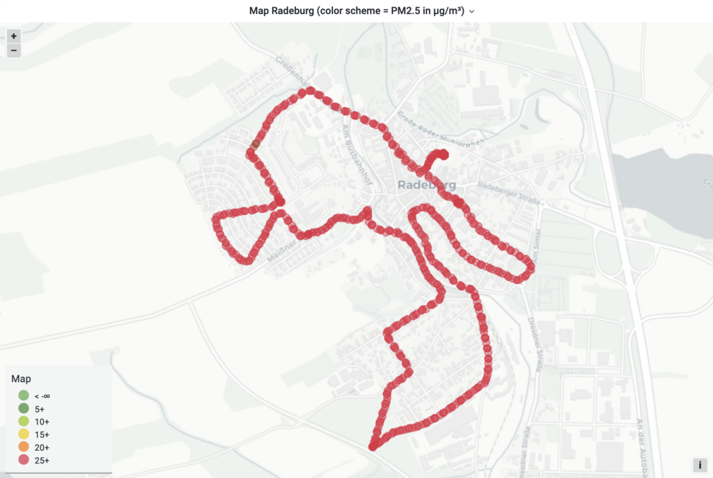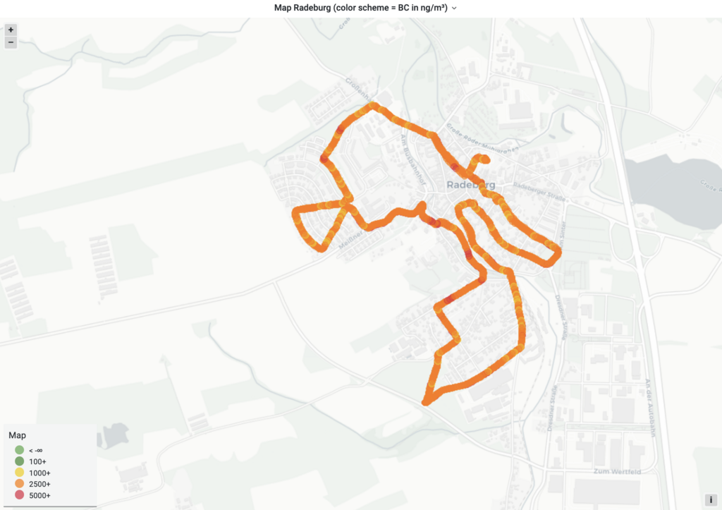 The situation was particularly drastic on Thursday (5 February 2026): "While we usually see significant peaks in the morning and evening and a decline in between, on this day the concentration remained consistently high and hardly fell below 100 micrograms per cubic metre in our mobile PM2.5 measurements. That is four times the daily limit value. Soot concentrations were also very high throughout the day, ranging from 2.5 to 5 micrograms per cubic metre across the entire study area. This suggests that the fog absorbed the pollutants from heating systems and traffic and held them over the town," explains Dr Jens Vogtländer from TROPOS, who walked through Radeburg on a fixed route with a measuring backpack to supplement the point measurements taken by the station at the market square with mobile measurements around the town. ‘In the end, I spent a total of 12 days in Radeburg for the mobile measurements (6 measurement days in February 2025 and 2026), during which time I walked the same 7.5 km route around 50 times, spending around 100 hours on foot on the streets of Radeburg.’ That adds up to a distance of over 375 km – a total of 9 marathons or one and a half half marathons on each of the days he was out, during which Vogtländer got to know Radeburg and also got into conversation with the people of Radeburg.