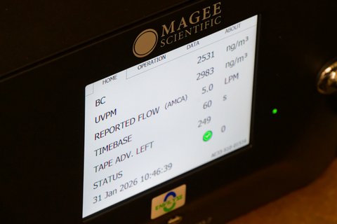 PM10 concentrations reached up to 80 µg/m3 (micrograms per cubic metre), while soot content exceeded 6 µg/m3. At the same time, the Aerosol Chemical Speciation Monitor (ACSM), a special mass spectrometer, shows organic peak values for PM1 above 30 µg/m3 – “strongly consistent with emissions from residential wood burning”. "These are unusually high pollutant concentrations for German conditions, levels comparable to severe winter pollution episodes reported in highly polluted regions worldwide, for example, where 100 µg/m3 is not uncommon. We can see this just by looking at the filters, which are dark brown instead of the usual light grey," reports Dr Nabil Deabji, who has been supervising the measurements in Radeburg since the beginning. ‘We were particularly surprised that such high concentrations occurred despite high relative humidity and even precipitation, as precipitation normally removes fine particulate matter from the air. In addition, persistent atmospheric stagnation with very limited vertical air mixing likely contributed to elevated near-surface pollutant levels. This situation was further reinforced by the virtually absent wind in recent days, which strongly limited dispersion.’