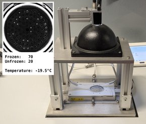 Atmospheric INP concentrations are very low (~1 m⁻³ to ~100 L⁻¹), making their detection challenging. At TROPOS, we use two complementary off-line techniques to measure them. Both work with suspensions of materials made in the laboratory, or with washing water of aerosol filter samples collected from the ambient air. Studies on INP conducted by TROPOS scientists in the lab or in the field are linked here.