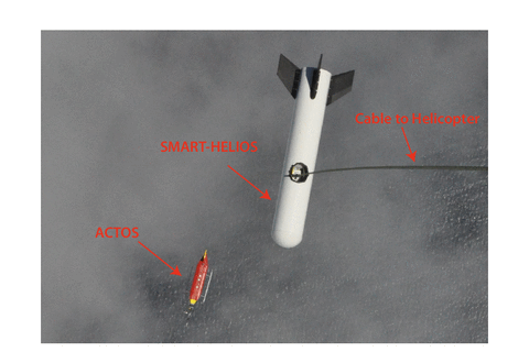 Eine zweite kleinere Nutzlast (SMART-HELIOS), welche vom Institut für Meteorologie der Universität Leipzig entwickelt und betrieben wird, kann zusätzlich in das Halteseil integriert werden um Strahlungseigenschaften von Wolken zu vermessen. Das Gesamtsystem bestehend aus Hubschrauber, SMART-HELIOS und ACTOS ist in der folgenden Skizze dargestellt.
