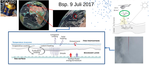 Anknüpfend an die Messkampagne über den Azoren 2017, in der per Hubschrauber die Wolken vermessen wurden, soll mit Hilfe von Satellitendaten (SEVIRI) über den Azoren der Aufwind abgeleitet und verglichen werden sowie der Tagesgang bezüglich der Strahlungsabkühlung und den Wolkeneigenschaften analysiert werden.