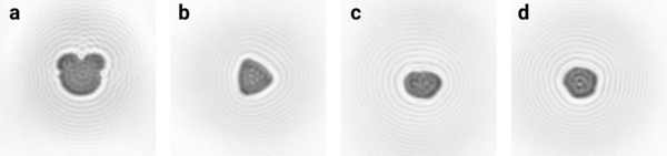 Holographische Aufnahmen von in Melpitz beprobten Pollenkörnern der Familien a) Pinaceae b) Corylus c) Alnus d) Betula