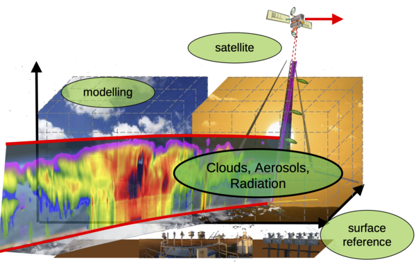- Hochauflösende Wolken-, Aerosol- und Strahlungseigenschaften aus Satellitenbeobachtungen, wie EarthCARE, Meteosat Second Generation, Meteosat Third Generation, Sentinel-2, CERES, Aeolus